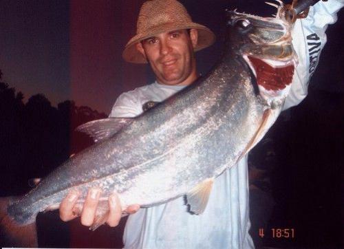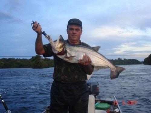 | Um peixe com cara de mau. Assim é a cachorra. Dotada de uma dentição de fazer inveja até ao conde drácula, mas às avessas, pois seus maiores caninos estão na mandíbula. É uma arma letal que transpassa suas indefesas presas. Não se chateie se voltar para casa com algumas iscas furadas. No São Benedito atinge portes impressionantes que proporcionarão a você brigas de primeira qualidade! |