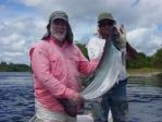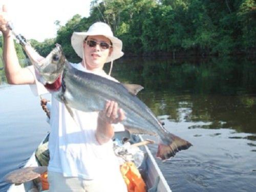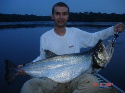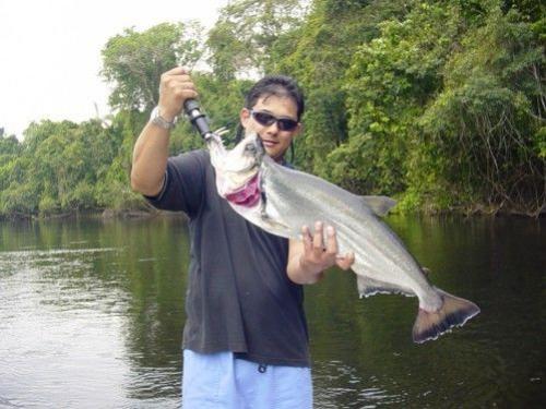 | Uma das espécies mais esportivas do Salto Thaimaçu, tem corpo com perfil superior arqueado após a pequena cabeça. A altura representa cerca de 1/4 do comprimento total. O que chama mais atenção é a sua ampla boca oblíqua e superior e seus dentes caniniformes da mandíbula, alojados em buracos na pré-maxila com esta fechada. A cor geral é prata azulada com ventre branco. O dorso é enegrecido na linha mediana. As extremidades das nadadeiras adiposa, anal e caudal são enegrecidas com uma faixa branca. Soltam muito muco se manuseadas com mão seca. Não tolera muito tempo de briga e exposição ao ar. Atinge mais de 1,2m e 16 quilos. |