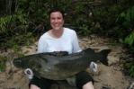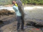| Sem dúvida um dos mais renomados pesos-pesados dos rios da Amazônia. De extrema força e persistencia fica a espreita em poços profundos e nos "pés" das corredeiras aguardando por incautas presas. A imensa bocarra agarra presas relativamente grandes e o jaú não fará a menor cerimônia em morder seu anzol. Bastante malcriado, proporcionará a você muitas descargas de adrenalina e um forte desgaste físico. Só para aqueles com o coração em dia! Quer tentar?. |