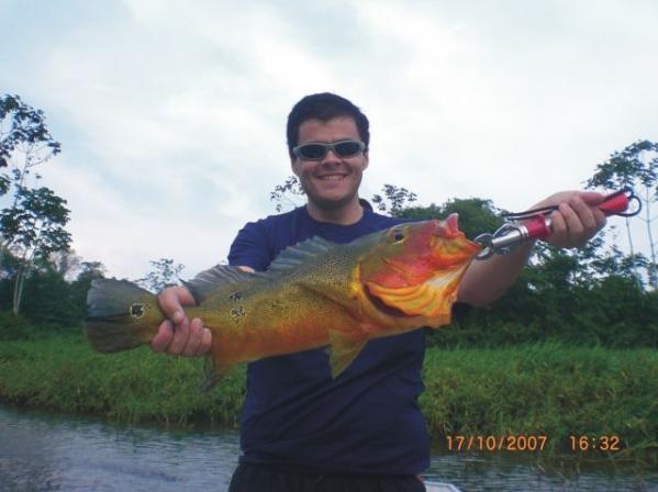 | Conheça o diferente Tucunaré Fogo, com suas fortes tonalidades vermelhas, encontrado exclusivamente na região do Thaimaçu. Um sinônimo para o tucunaré é explosão! Explosão no ataque da isca e na força da briga assim que fisgado. Como um cavalo chucro é preciso força e perícia para domá-lo! Não resiste a uma isca bem, e às vezes até mal, trabalhada. Ataca com uma fúria como se não comesse há semanas. Você não poderá deixar de testar sua força. Vá disposto a lhe "presentear" algumas iscas. |